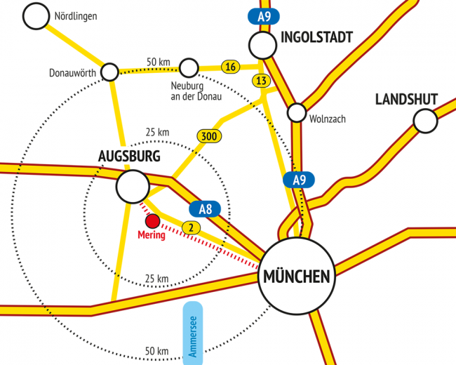 Die Marktgemeinde Mering im Landkreis Aichach-Friedberg ist die Heimat von rund 15.000 Einwohnern. Der charmante Ort, ist gleichermaßen ländlich wie modern und aufgeweckt und verfügt für Pendler über eine hervorragende Anbindung nach München.